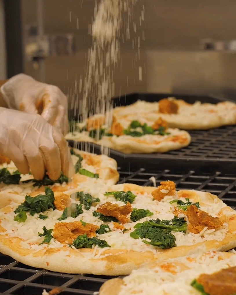 We are still deeply connected to home. The flour for our Roman-style pinsa pizzas comes from a 4th generation family-run mill in Le Marche. We use only the best San Marzano tomatoes from Campania and 100% Coratina Extra-Virgin Olive Oil made by a close family friend in Puglia exclusively for us.